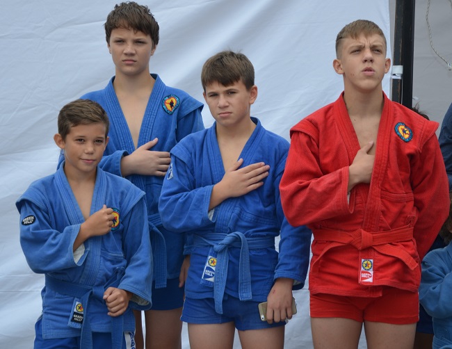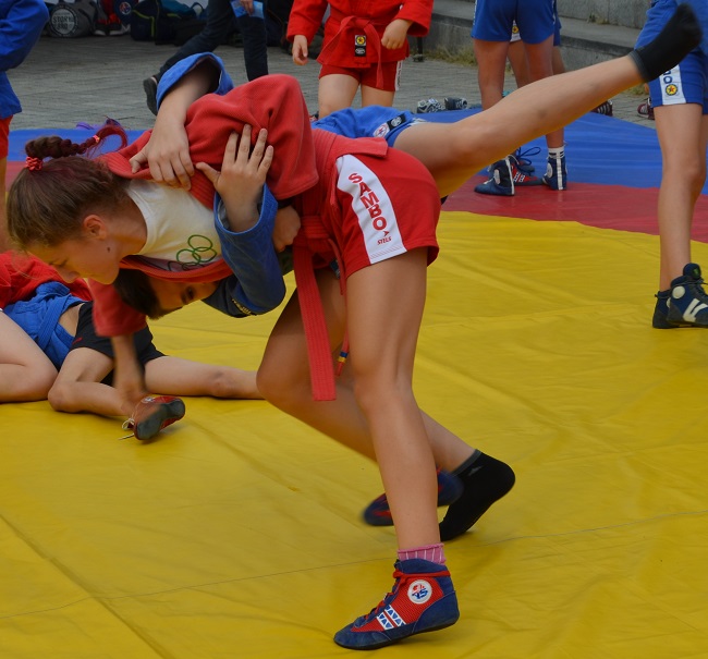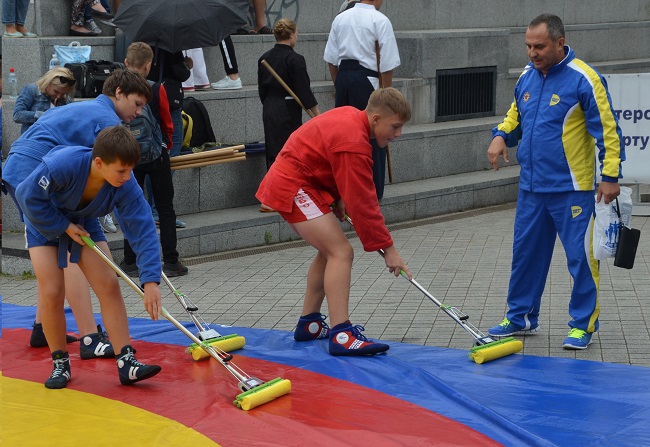 Наші самбісти успішно боролися на килимі не тільки один з одним, але і з дощем.