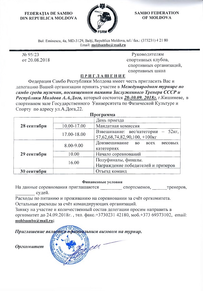 29 вересня у Кишиневі буде розіграно нагороди турніру пам'яті заслуженого тренера СРСР і Молдови Андрія Доги.