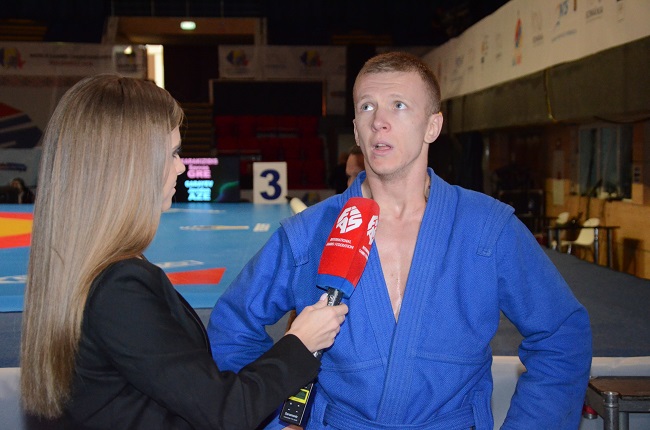 Дмитро ЄВДОШЕНКО ділиться емоціями з журналісткою телебачення ФІАС.
