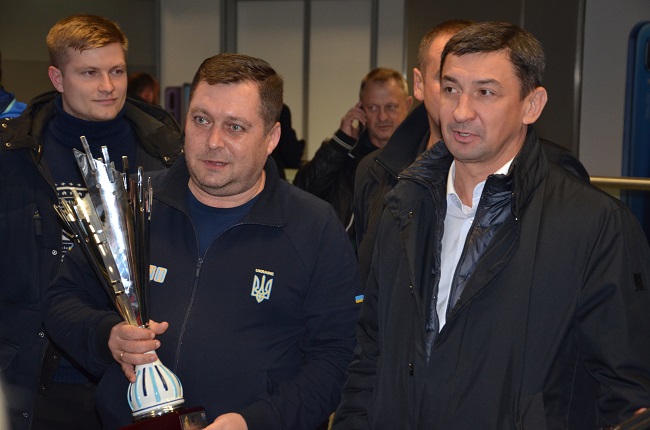 Збірну зустрічали в аеропорту "Бориспіль". І наших самбістів привітав заступник міністра молоді й спорту Ярослав Войтович (на світлині вище разом з президентом НФСУ Вадимом Рогачем).
