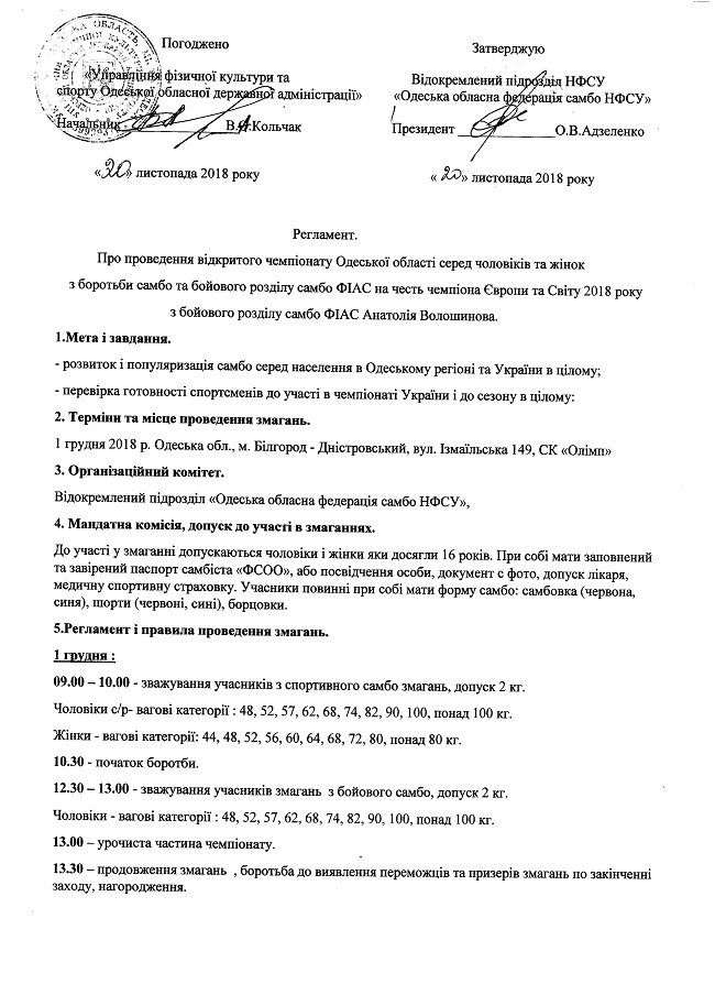 1 грудня в Білгороді-Дністровському відбудеться відкритий чемпіонат Одеської області на четь чемпіона світу і Європи з бойового самбо, вихованця спортивної школи Шабо Анатолія Волошинова.