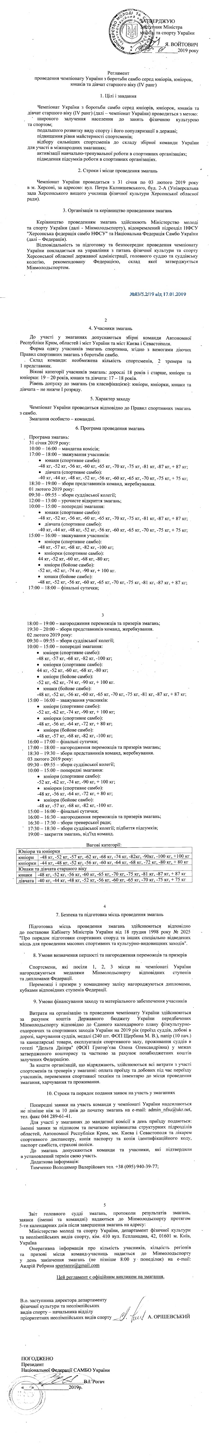 Регламент і список суддів молодіжного чемпіонату України