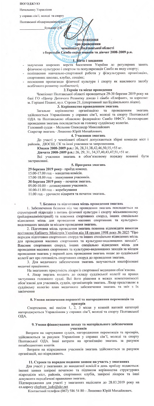 З приходом на посаду регіонального осередку НФСУ в Полтавській області Миколи Лози в регіоні почалася робота з поступового виведення самбо на новий якісний рівень. Так, 29-30 березня Горішні Плавні приймуть дитячі обласні змагання.