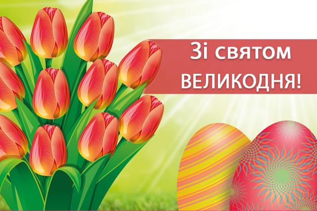Зі світлим святом Великодня! Нехай ангел охоронець оберігає нас від усіх негараздів. Думки нехай будуть світлими, а щастя в дім приходить із кожним новим світанком. Нехай наше життя наповниться яскравими зустрічами і подіями, вірними друзями, хорошим настроєм і приємними відчуттями.