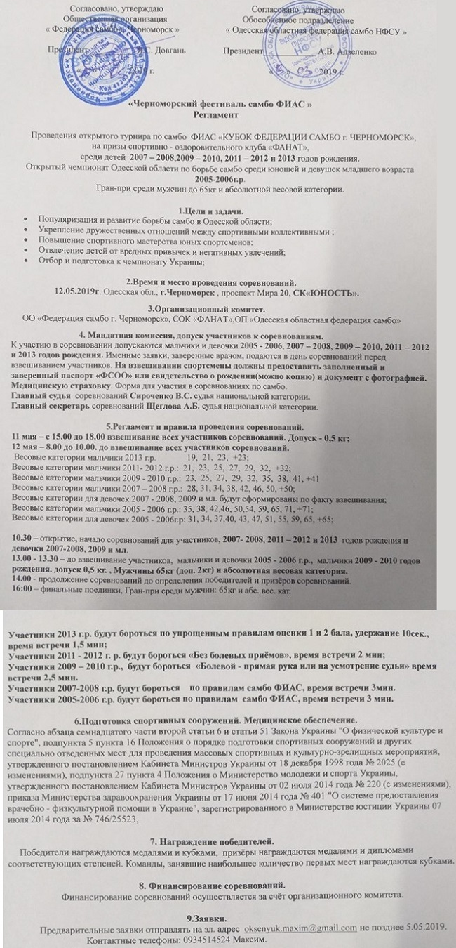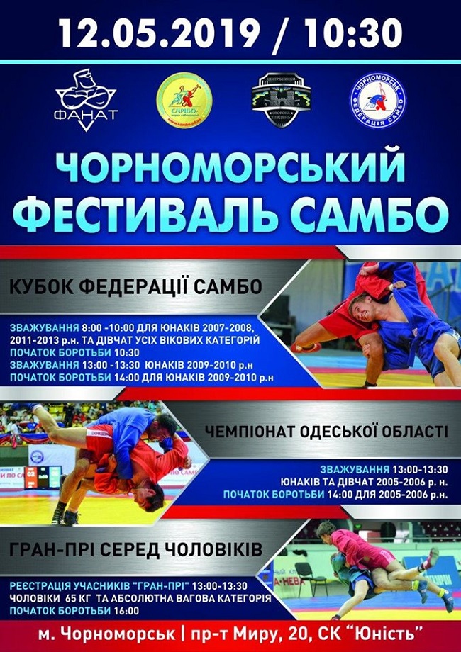 12 травня в Чорноморську Одеської області пройде "Фестиваль самбо". Змагання відбудуться у місцевому спортивному комплексі "Юність" у різних вагових і вікових категоріях.