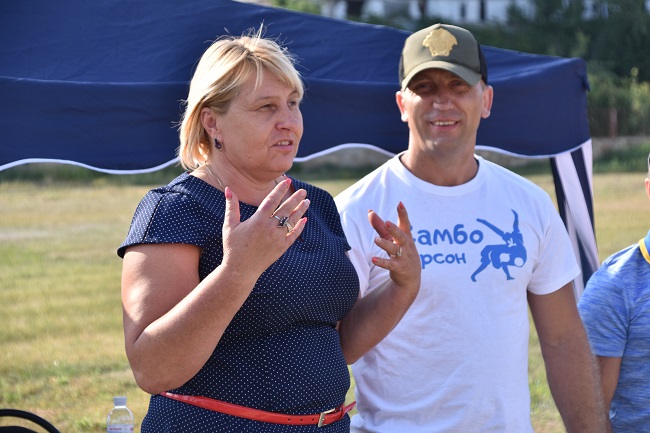 Голова Білозерської територіальної громади Антонина ЧЕРЕДНИК і президент Херсонської обласної федерації самбо НФСУ Іван ЛИТВИНЕНКО.