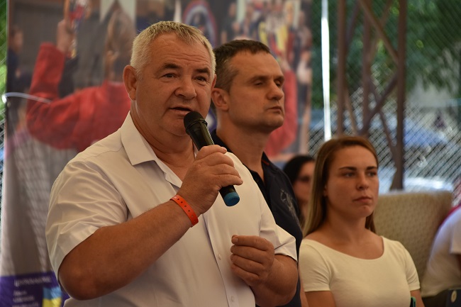 Отже, Всеукраїнський турнір «Кубок «Юна Україна» (така повна офіційна назва) зібрав дві з половиною сотні учасників із 16 регіонів нашої держави. О десятій ранку стартували попередні поєдинки, а о другій дня пройшло відкриття змагань, яке відвідали і зарубіжні гості (на світлині нижче - віце-президент Федерації самбо Молдови Юлій Пятьковський).