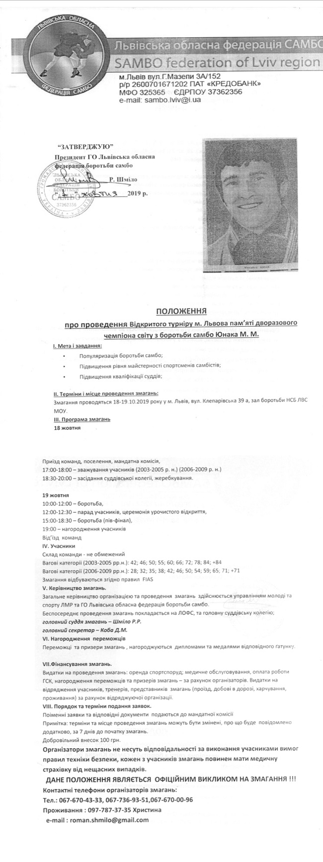 Традиційно у Львові проходив турнір на призи Михайла Юнака, переможця першого в історії чемпіонату світу, заслуженого тренера... 18-19 жовтня 2019 року це будуть змагання пам'яті Михайла Михайловича. Він пішов із життя в грудні 2018-го.