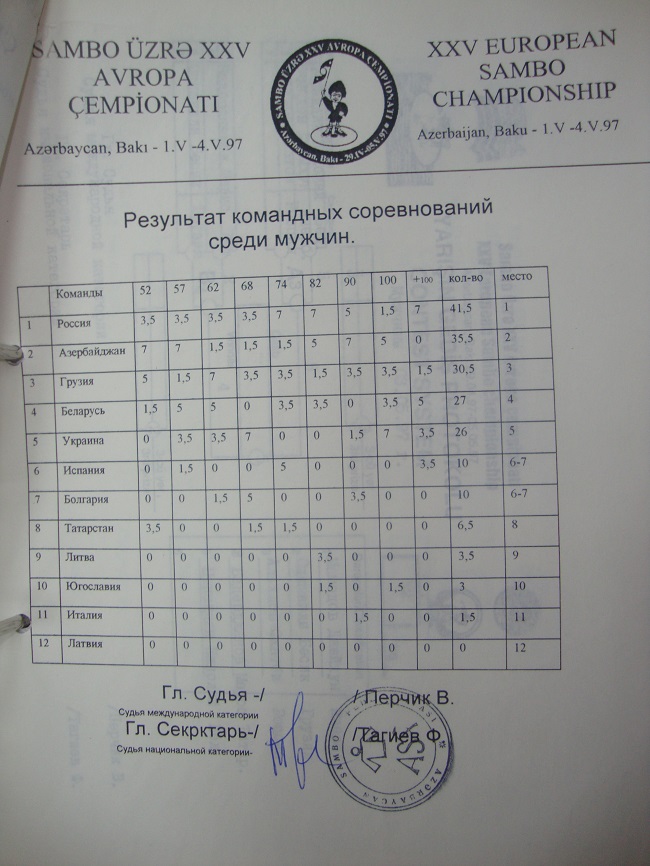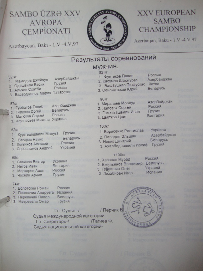 Мужчины - 1 - 4 мая 1997 года. Баку.