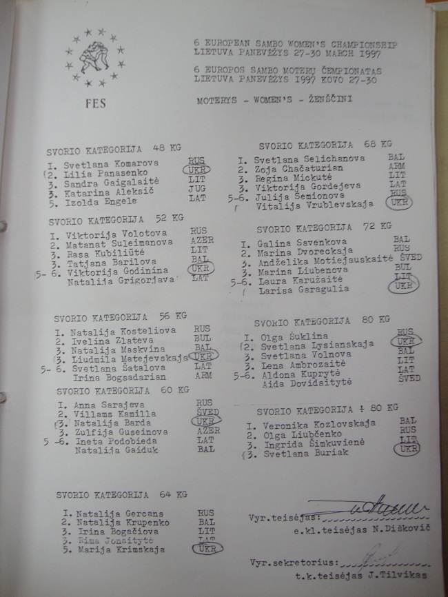 Женщины - 27 - 30 марта 1997 года. Паневежис.