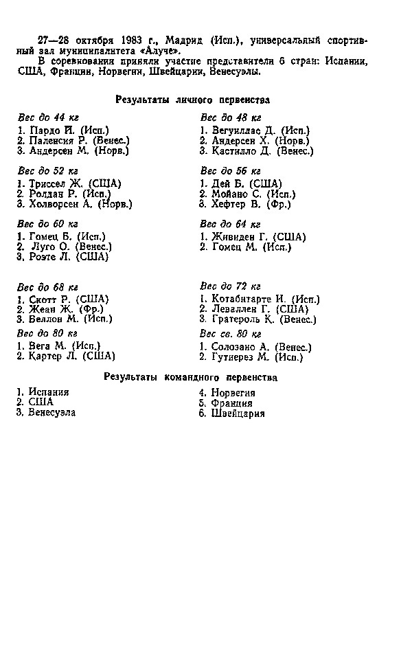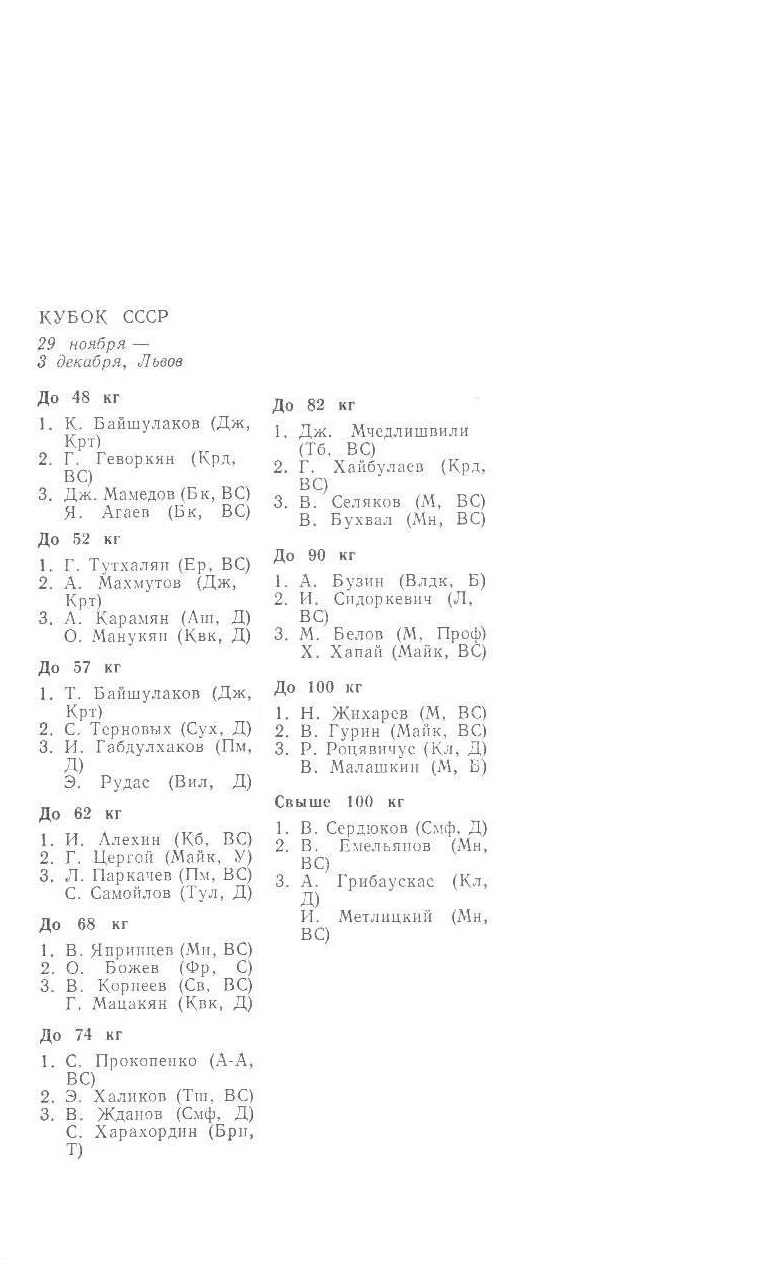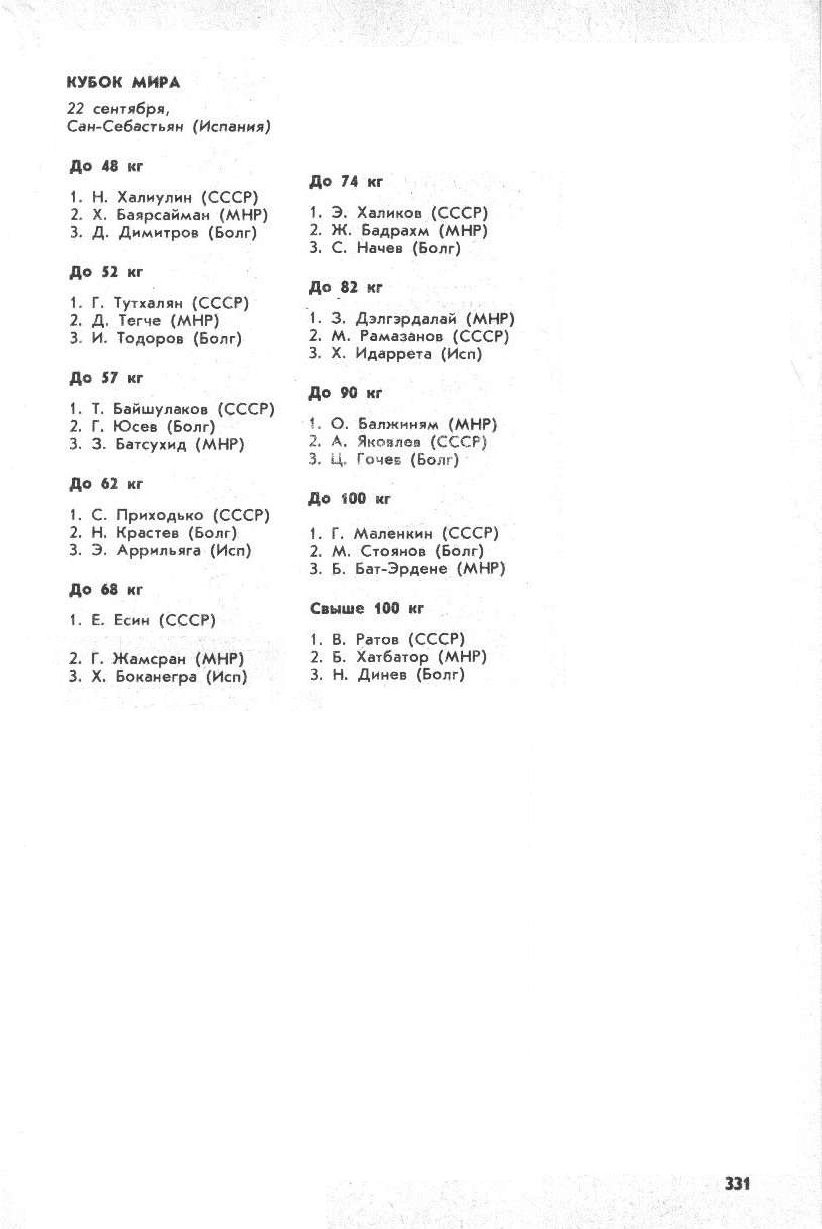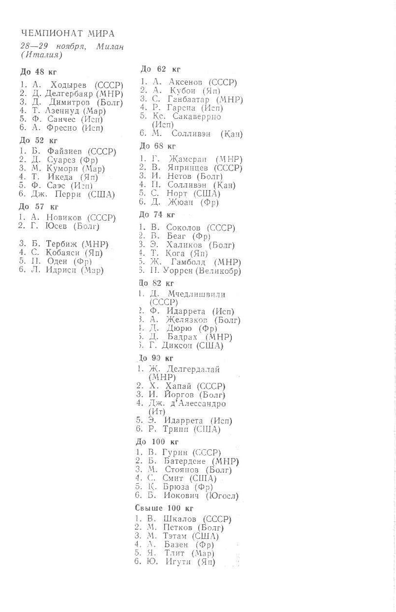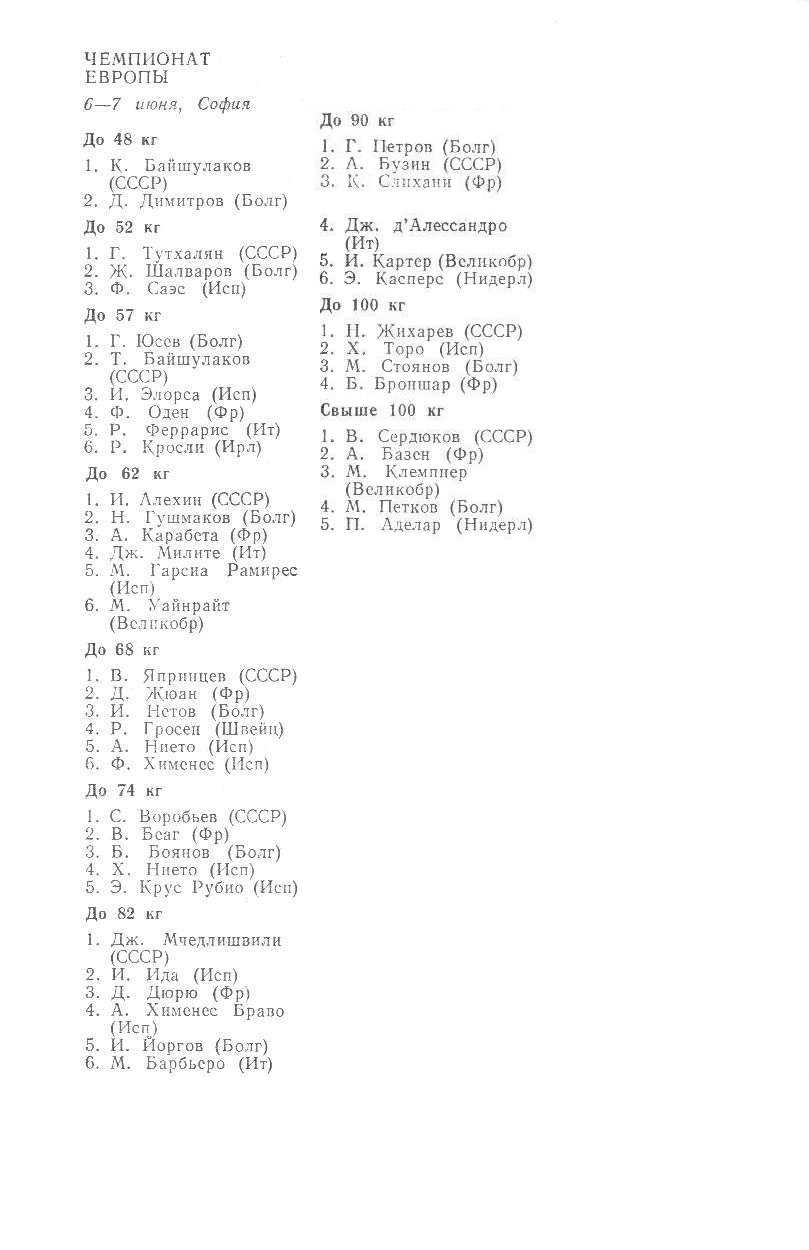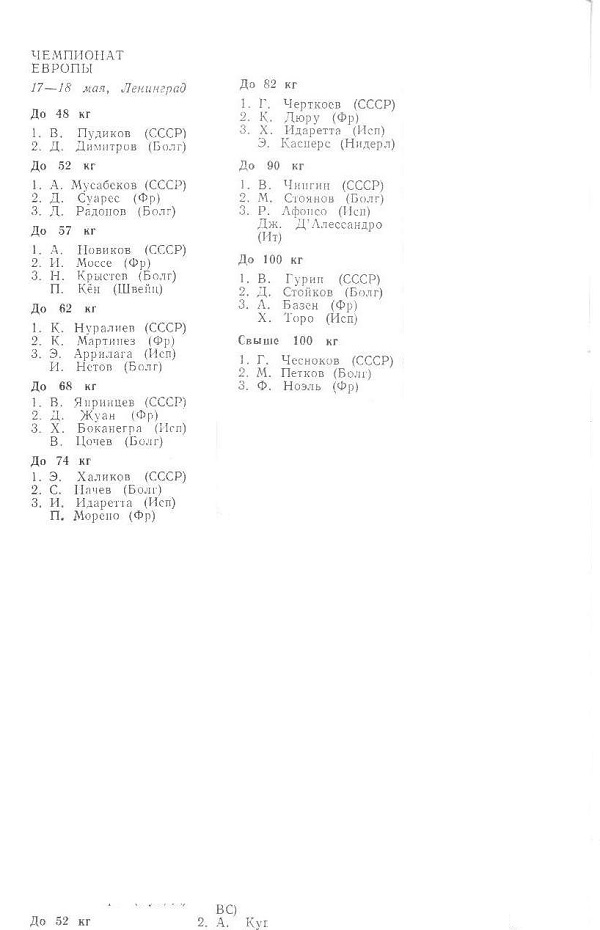 I чемпионат Европы (открытый) 24 – 26 ноября 1972 года. Рига До 58 кг 1. В. Кюлленен (СССР) 2. П. Парвянов (Болгария) 3. Х. Насимура (Япония) П. Мунхи...