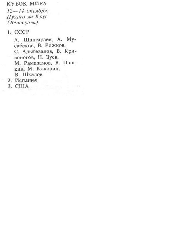 Кубок мира. 18-20 сентября 1981 года. Понтеведра и Виго (Испания) 1. СССР 2. Испания-1 3. США 4. Испания-2 Сборная СССР: С. Ростиашвили, Ю. Круглов, Г...