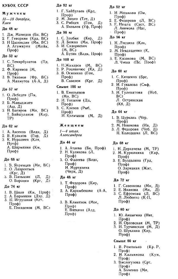 XLII-й Чемпионат СССР по самбо проходил в Омске с 28 по 31 июля 1988 года. Наилегчайший вес до 48 кг 1. Мамедов Д. Баку 2. Шайхиев А. Уральск 3. Ульян...